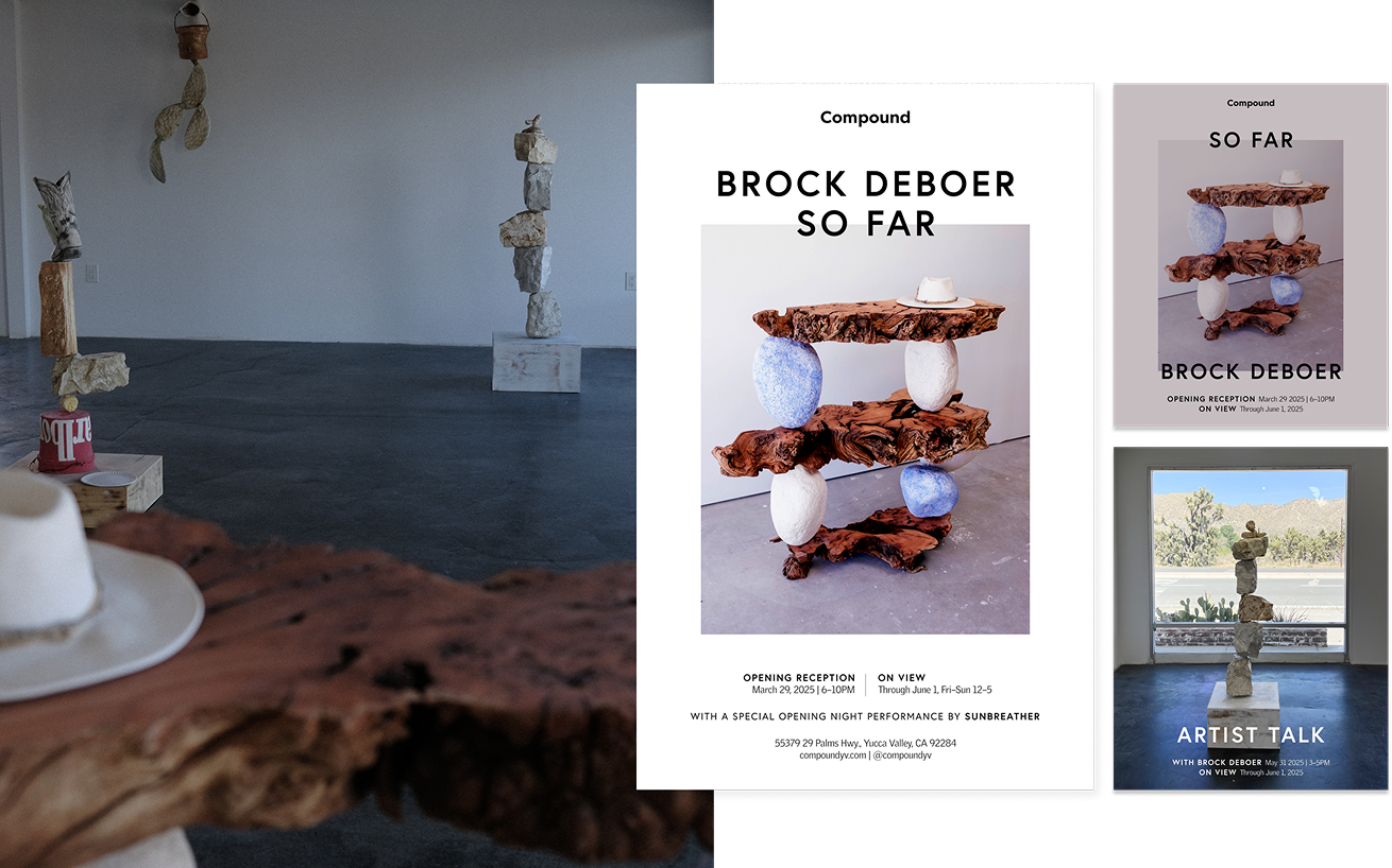 We designed a simple wordmark and design system to feature Compound’s main exhibition calendar and events. As co-founders, leadership, and members of its Board of Directors, we’re responsible for defining not only its mission and vision, but day-to-day operations.